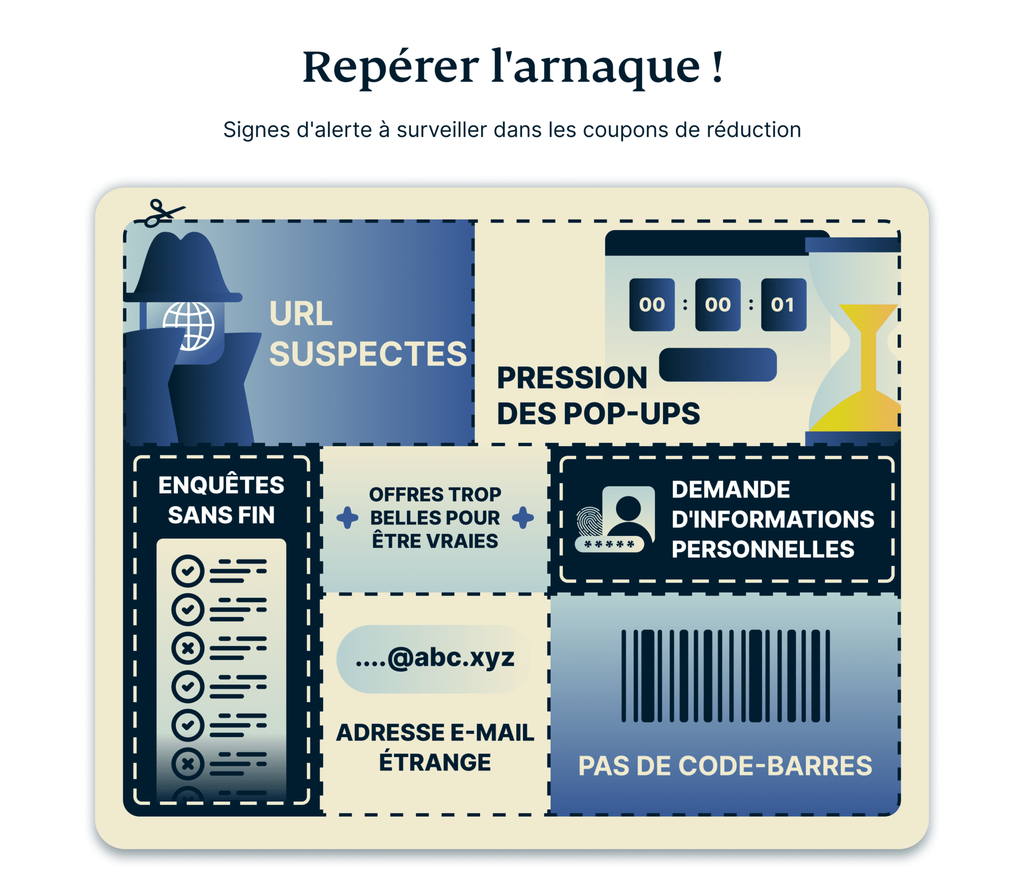 • Comment repérer une arnaque aux coupons de réduction : Les signaux d’alerte à surveiller