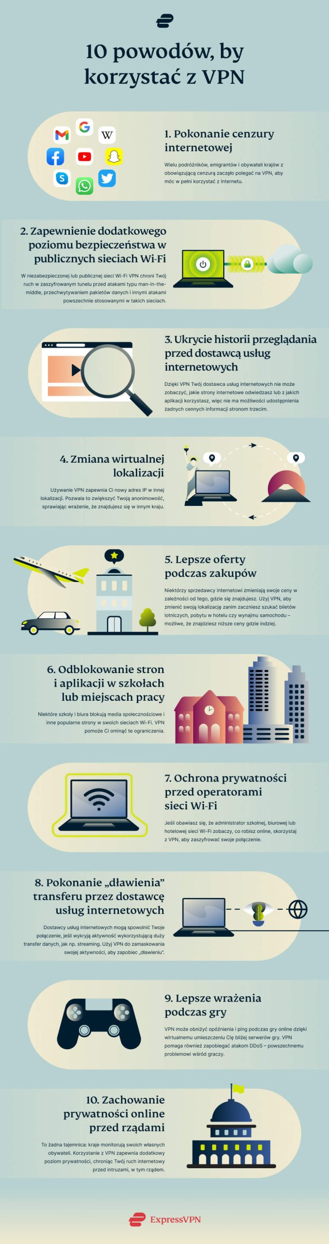 Pobierz ExpressVPNW jednej praktycznej infografice zebraliśmy 10 najważniejszych powodów, by korzystać z VPN. Znasz inne powody? Podziel się nimi w komentarzach!
