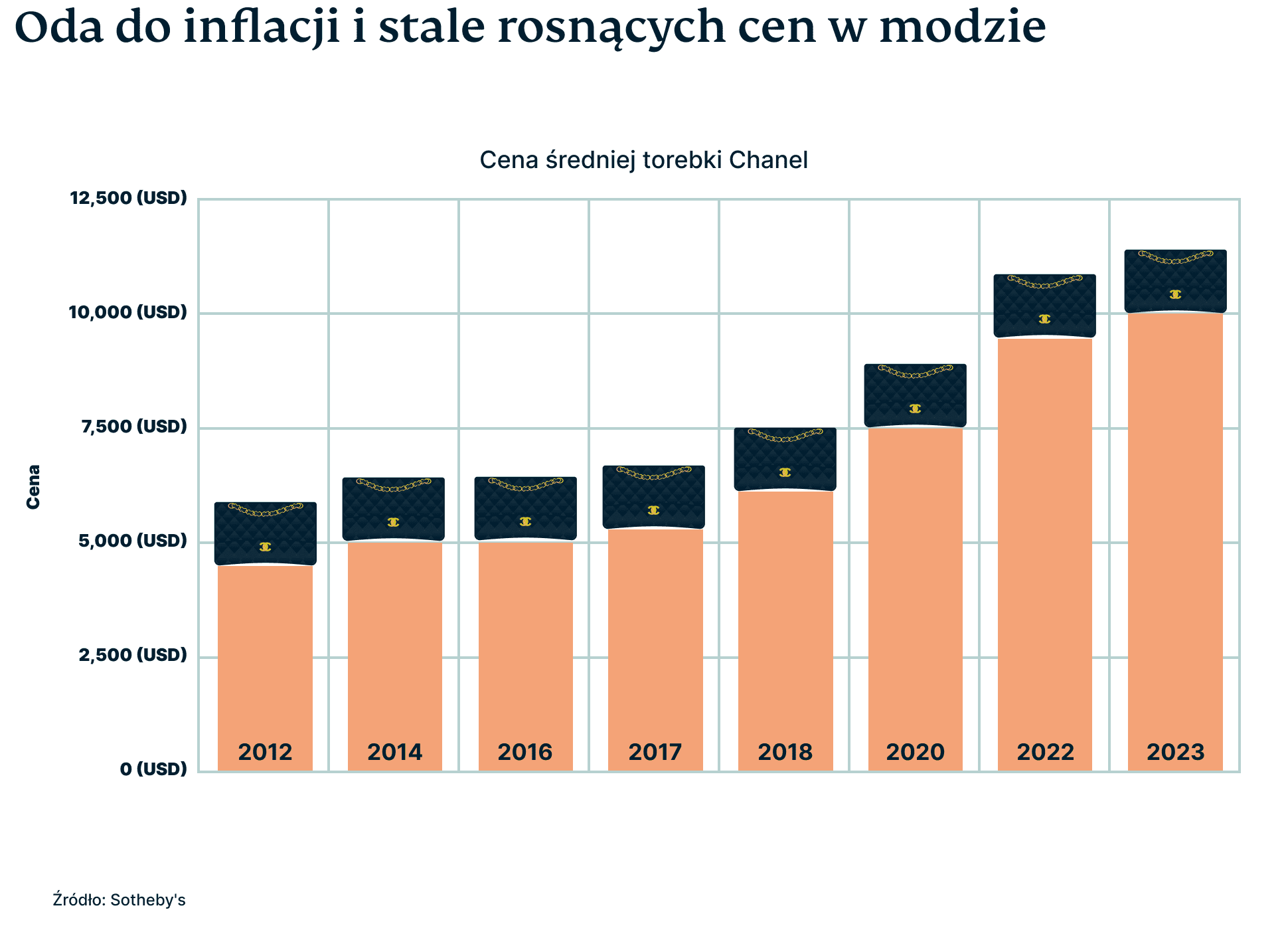Torebki Chanel również były świadkami znacznego wzrostu cen na przestrzeni lat, a ostatni miał miejsce w marcu tego roku. Sotheby's donosi, że Chanel podniósł cenę swojej średniej klasycznej torebki z klapką o 16% (obecnie kosztuje ponad 10 000 USD). Inne popularne projekty, takie jak Coco Handle, Chanel 19 i Pearl Crush, również odnotowały wzrost cen o 14%.