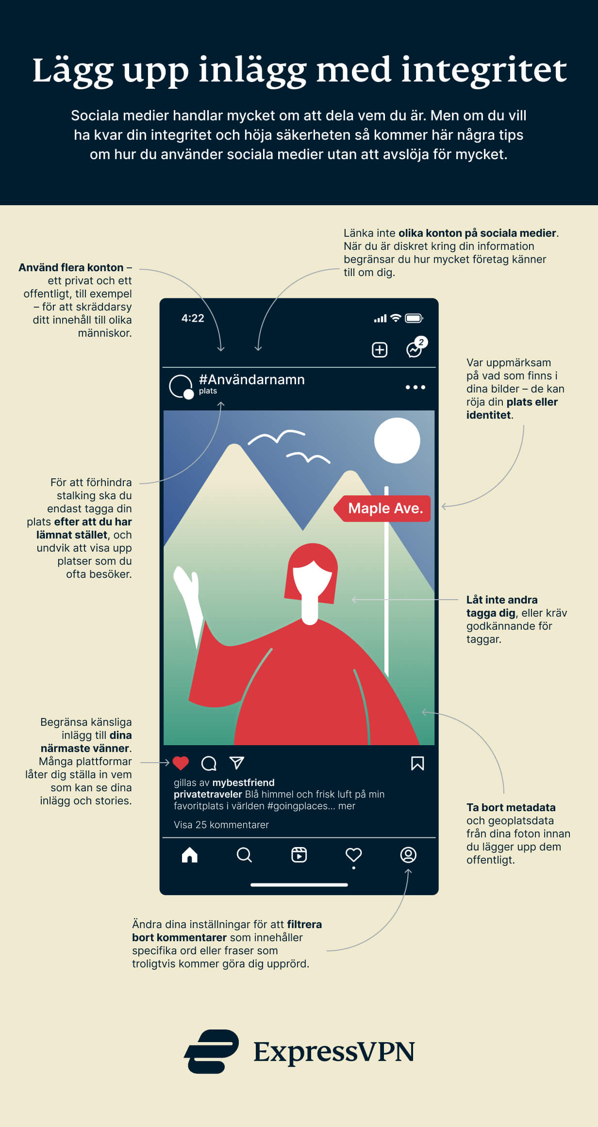 Även om det inte borde vara upp till offren för stalking och cybermobbning att skydda sig, så finns det vissa strategier du kan ta till. Inför årets Stop Cyberbullying Day, som infaller den 17 juni 2022, har vi satt ihop en infografik med praktiska tips om att använda sociala medier med högre integritet och säkerhet.