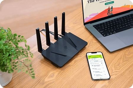 Performanstan ödün vermeden gezinin, indirin veya 4K HD video izleyin. Aircove, aynı anda birden fazla cihaz için 330 Mbps'ye* varan VPN hızları sunar. Bu, Netgear R7000 gibi eski VPN yönlendiricilerinden 7 kat daha hızlıdır.