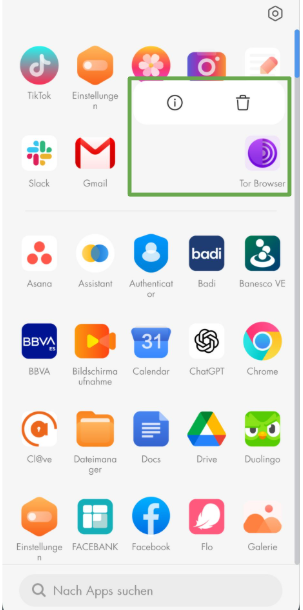 2. Tippe auf das Symbol und halte es gedrückt, bis ein Menü erscheint.