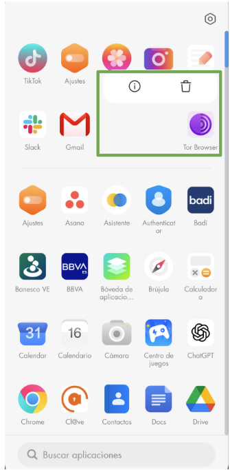- Busca el icono de la aplicación del navegador Tor.