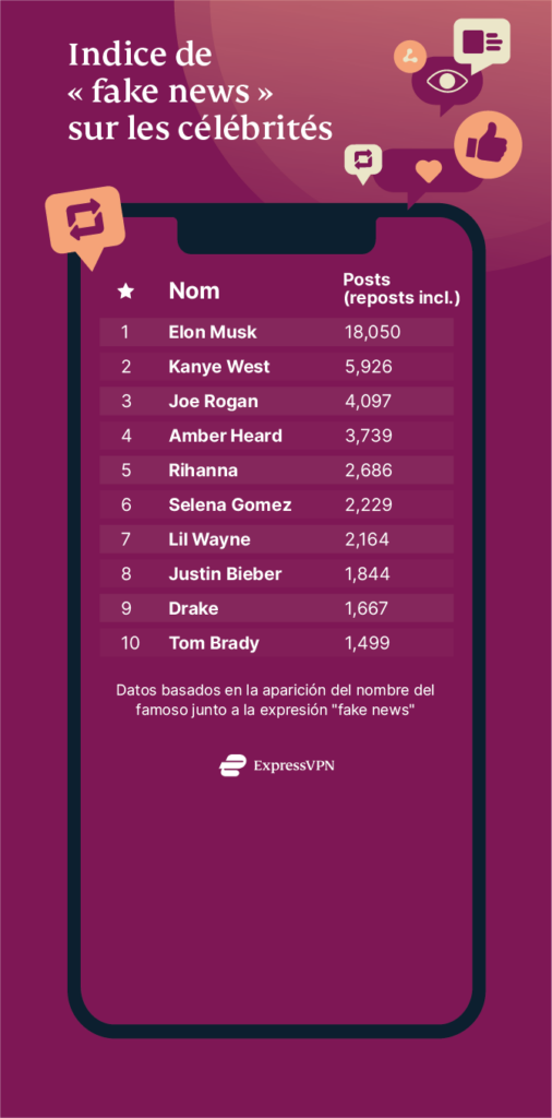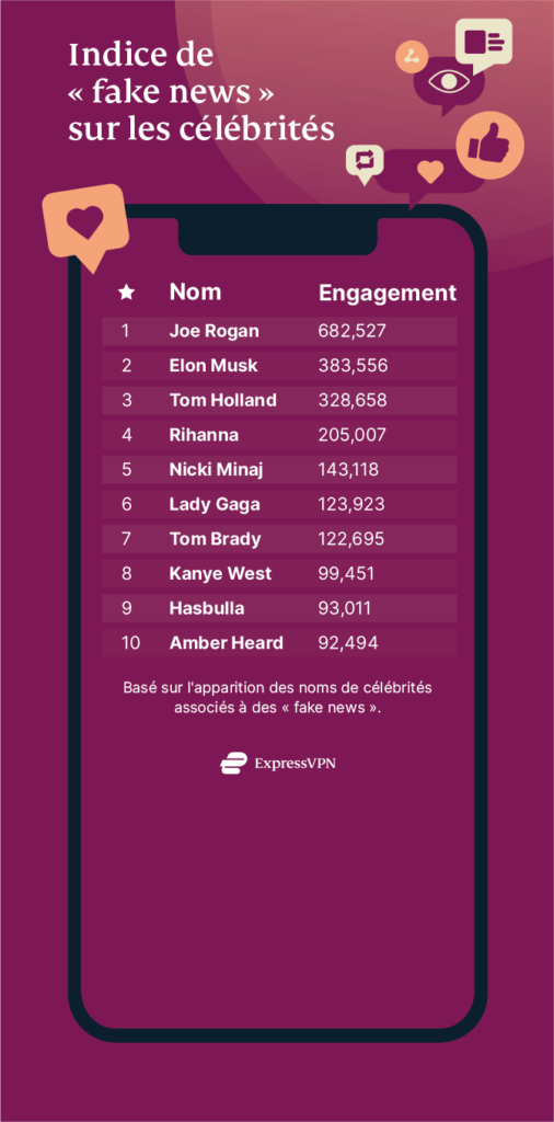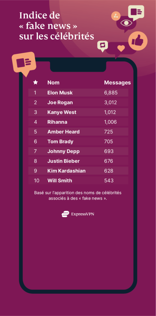 • Le classement des 20 célébrités les plus touchées par les « fake news »