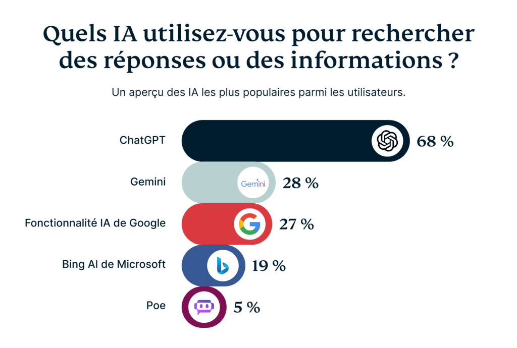 Les Millennials ne sont pas en reste, avec 73 % des 27–34 ans intégrant l'IA dans leurs habitudes de recherche. Cela témoigne d'une adoption croissante de ces outils intelligents qui répondent parfaitement aux attentes des plus jeunes : des réponses rapides, conversationnelles et hautement adaptables.