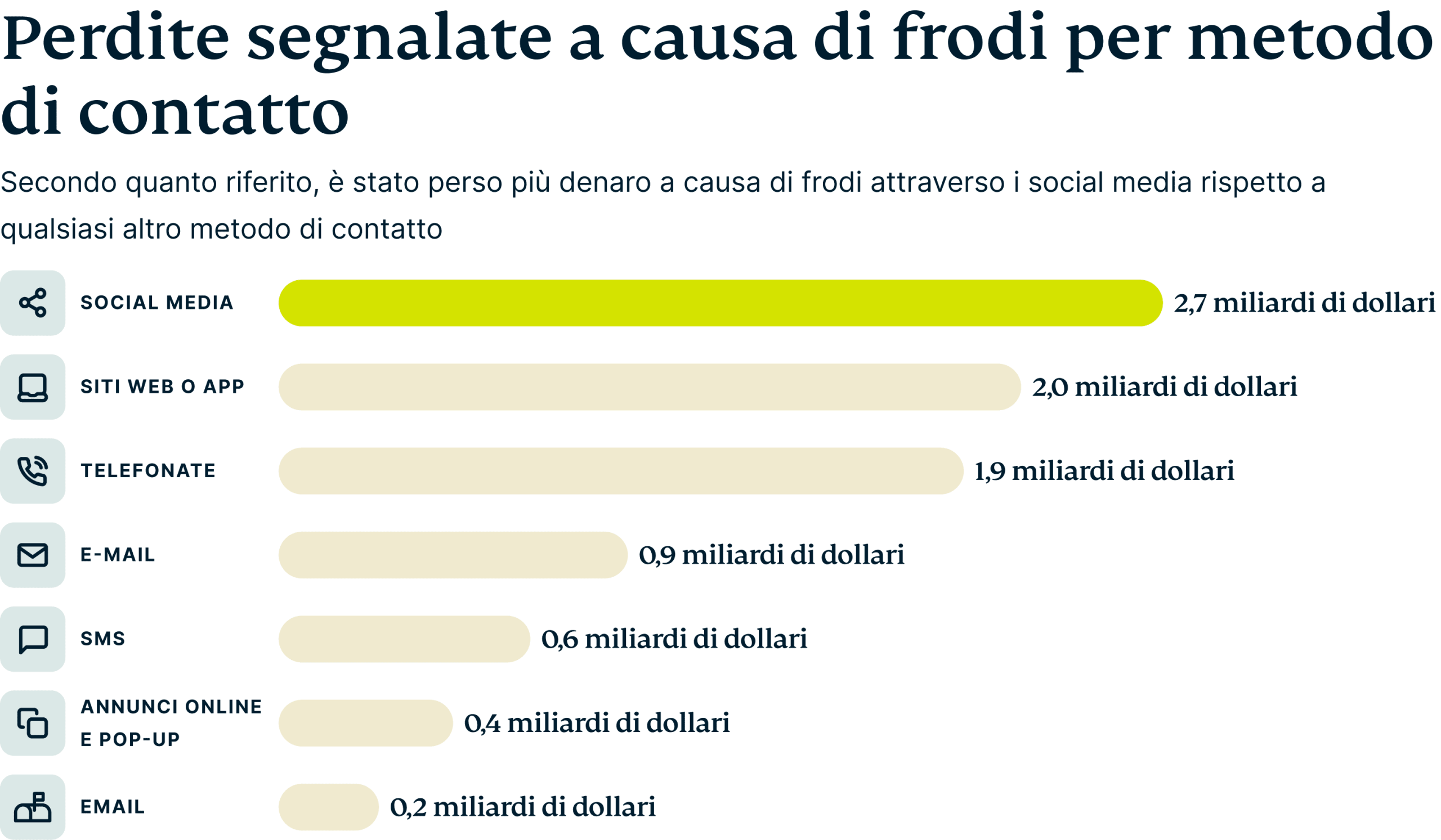 Le piattaforme dei social media sono state il focolaio delle attività truffaldine nel 2023, con gli americani che hanno perso 2,7 miliardi di dollari solo a causa delle truffe sui social media. I truffatori fanno sempre più leva su queste piattaforme, sfruttando la fiducia e la vasta portata che offrono per intrappolare vittime ignare.
