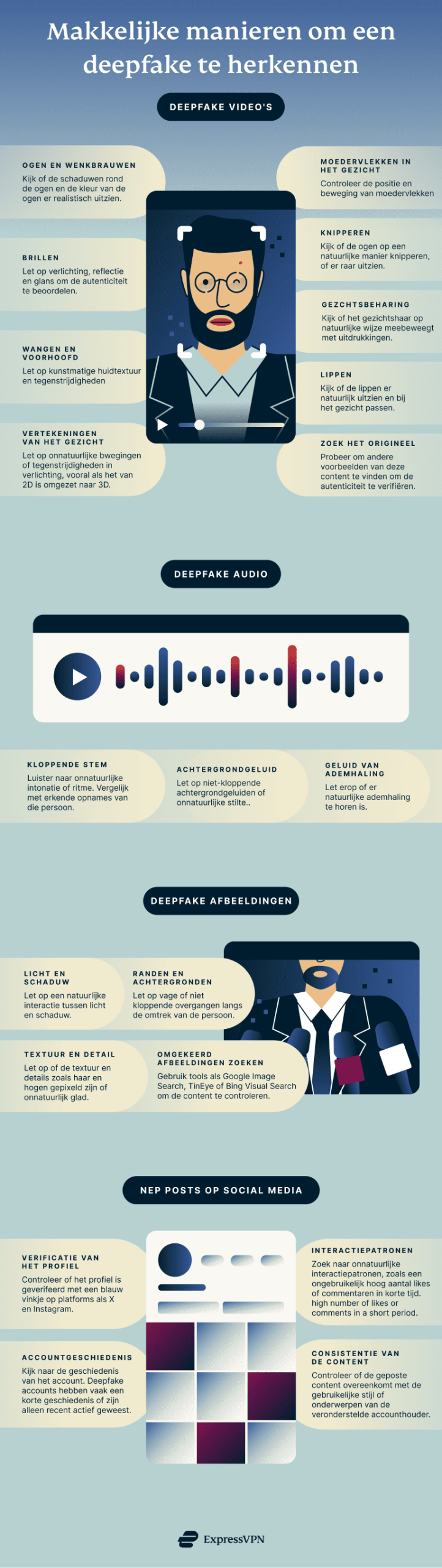 • ExpressVPN, een toonaangevende VPN-provider, biedt een handleiding waarmee gebruikers de veelbetekenende signalen van deepfakes en nep-verkiezingsnieuws kunnen herkennen. Overweeg een VPN-download voor extra bescherming van je online privacy.