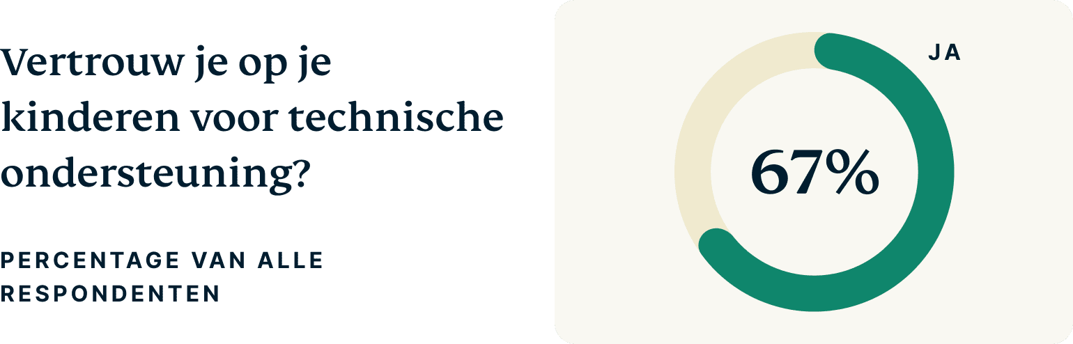 Reken je op je kinderen voor technische ondersteuning? (% van de respondenten die ja zeiden)
