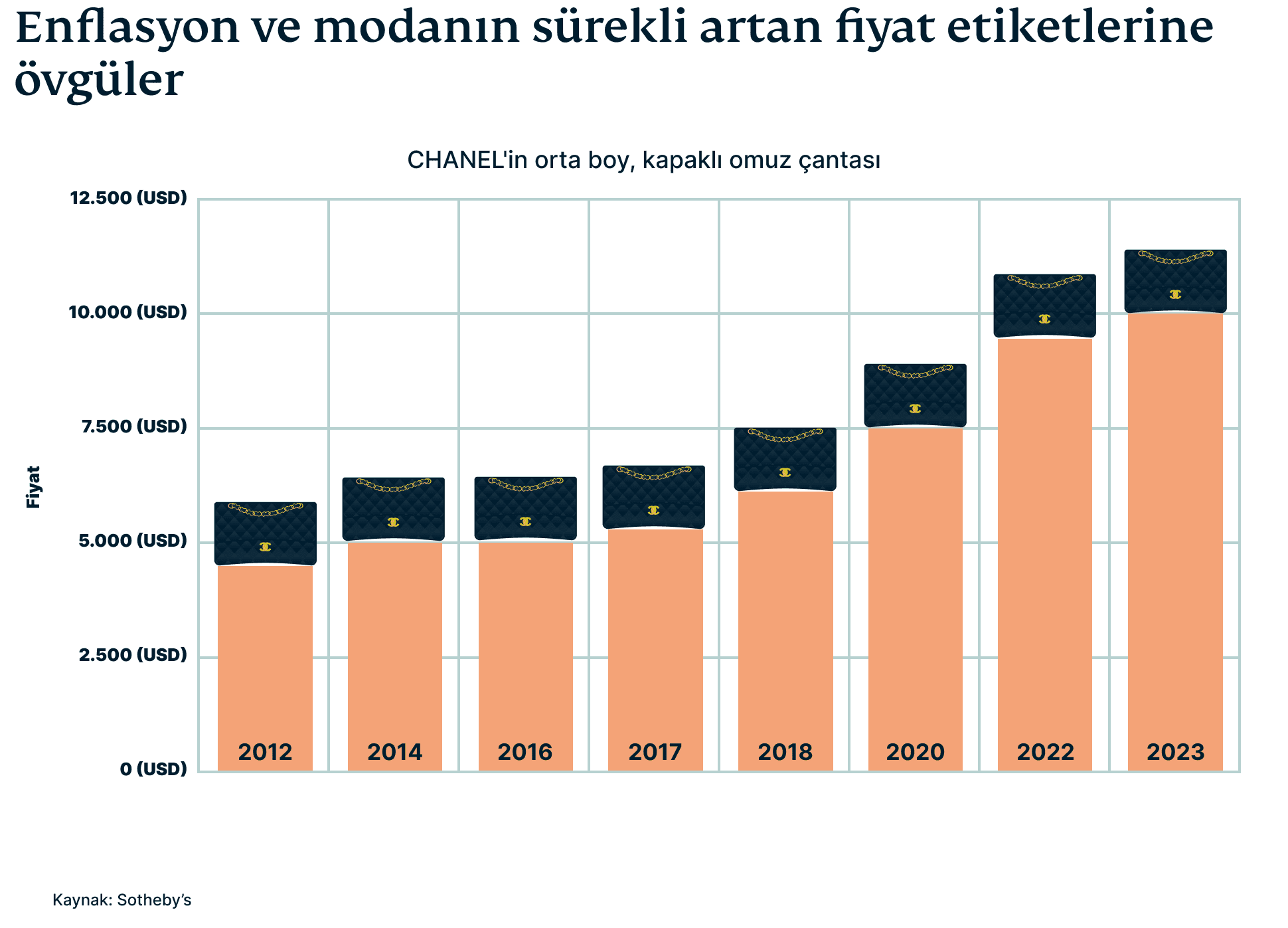 Chanel çantaların fiyatları da son yıllarda önemli bir yükseliş yaşadı ve bunlardan biri de bu yılın Mart ayında yaşandı. Sotheby's, Chanel'in Medium Klasik Kapaklı çantasının fiyatını %16 ((şu anda 10 bin ABD dolarının üstünde bir etikete sahip) artırdığını bildirdi. Coco Handle, Chanel 19 ve Pearl Crush gibi diğer popüler tasarımlar da fiyatlarında %14 oranında bir artış gördü.